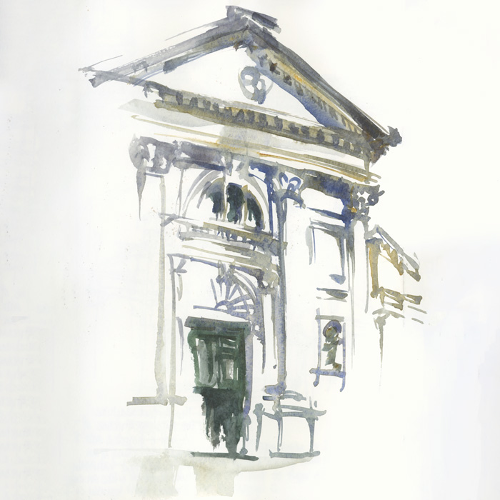 Today I was longing for a bit of Palladio so I pulled out my three sketchbooks from my time based in the Veneto and as I turned the pages I was struck by how many paint-only sketches (direct watercolour) I did this year. And without realising exactly what I was doing, I suddenly found myself sitting in front of my scanner, scanning them all to share with you!