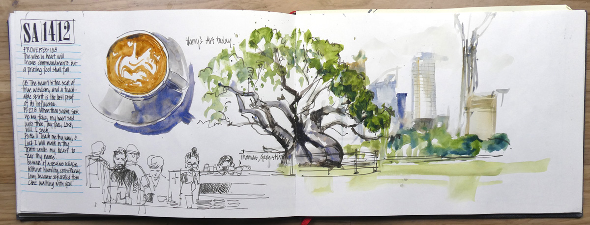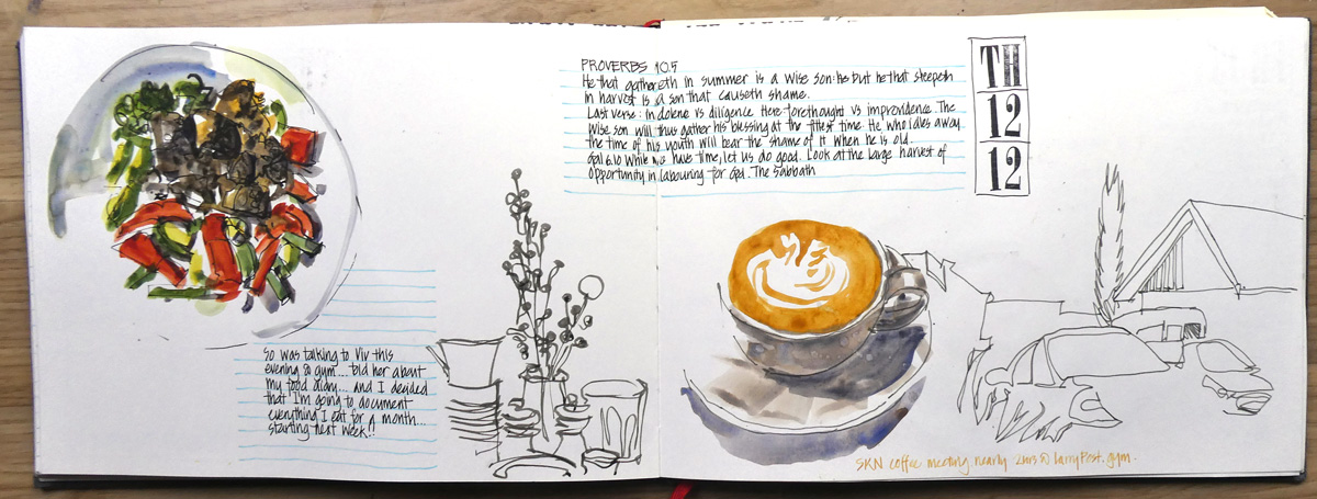 I normally struggle using A4 landscape for everyday sketching. When I come home from my big trips I have often tried to finish up my moleskine book with ‘back home’ sketches. But I normally abandon it as it’s just too big and hard to fill up with boring everyday sketches. Plus it is a little heavy to carry around everywhere.