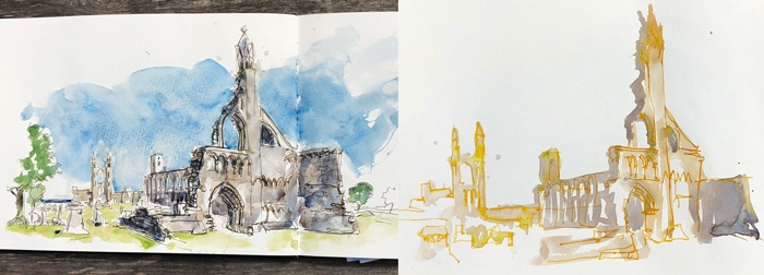 These small decisions to carve out some time for my own sketching added something extra to an already incredible experience. I had a record in my book rather than just my memories and a few photos. I was also very happy with the sketchbook layout compositions that I was able to achieve on both tours. (Hmm, maybe I should do a separate article about this – would you like that?)