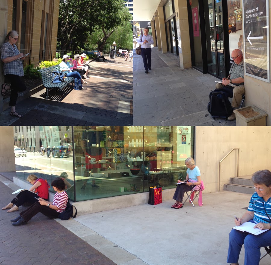 Week 2 we took perspective totally out of the equation and sat directly opposite some lovely buildings along George St in order to focus on these aspects of drawing architecture. This stretch of the road has a lovely variety of buildings and I let everyone choose which one they wanted to sketch. The easy looking ones still proved a challenge -especially getting the proportions right throughout and allowing for the right thicknesses of the various components – but by working systematically everyone was able to produce a wonderful sketch.