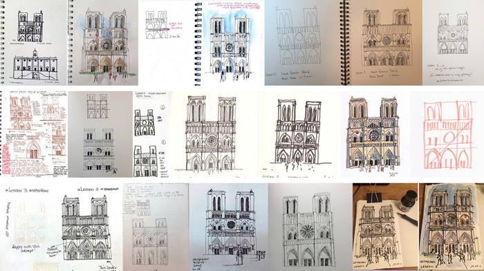 I would like to use this opportunity to say that I’m currently working through your online Foundations course and am both struck and deeply appreciative of the work and attention you have put into this course. I’m new to sketching, but come from a background of large format black and white photography. I’ve lugged by big camera’s around France and Greece photographing ancient ruins and cathedrals. Chartres remains a favourite.
