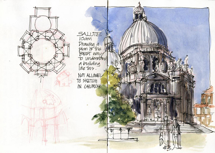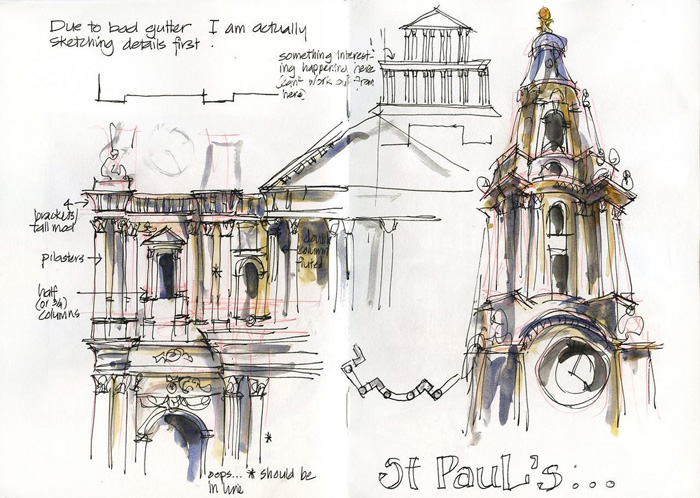 Another working page this time of St Paul’s in London. You can see the final sketch here.