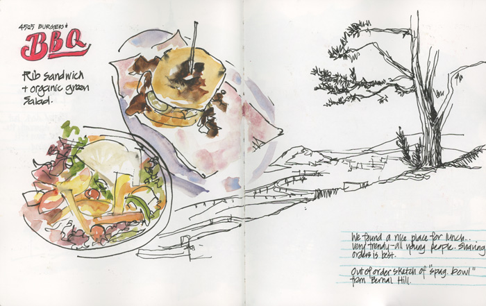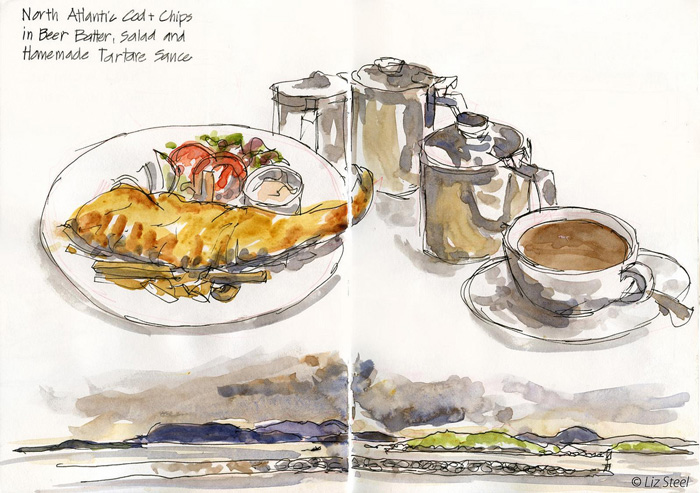 Most people would do a big landscape sketch and a smaller one of food… I do the reverse.