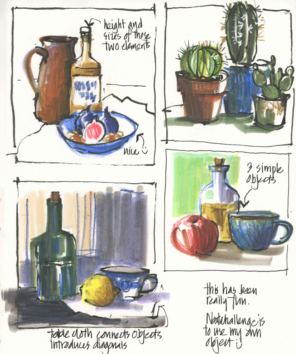I’m looking forward to sharing all my sketches from March in our usual monthly livestream for paid members of the community but here are a few little still life studies I did last week! Three objects in three passes.
