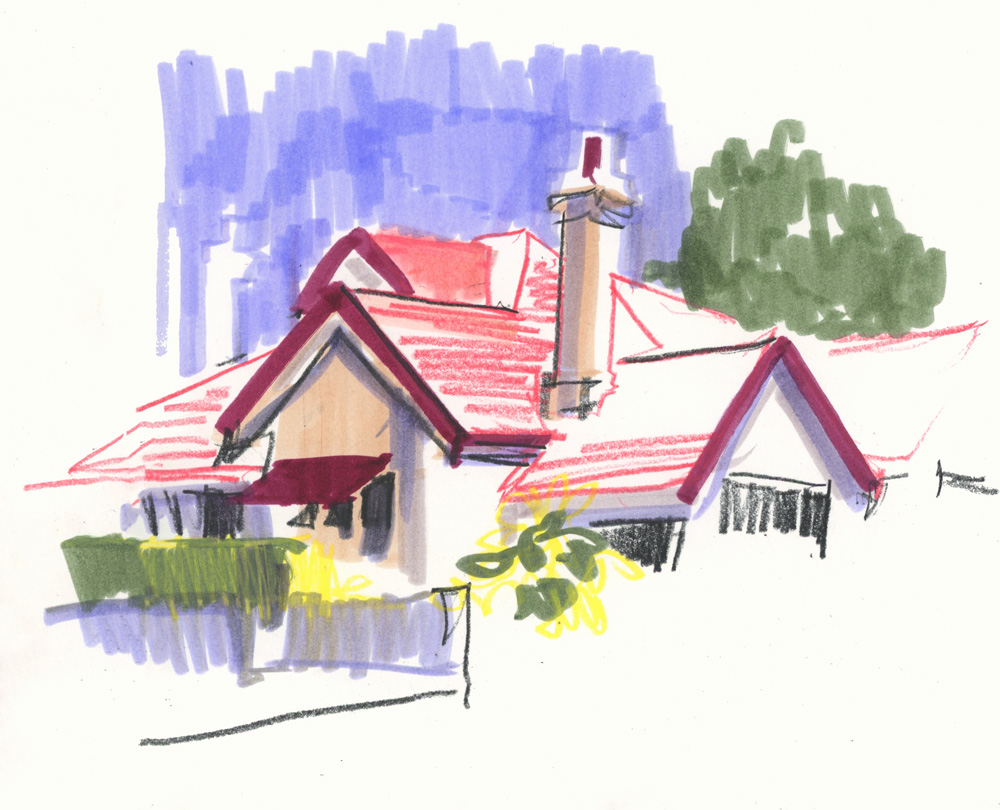 The biggest challenge with this type of sketching habit is keeping myself inspired because the subject matter is repetitive – I’m returning to the same locations over and over. And this is why in recent years I started changing my media so that I had something new to focus on. But there is a limit to how often you can change media and it’s easy to become overwhelmed  and end up spending a lot of money!