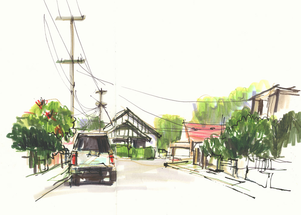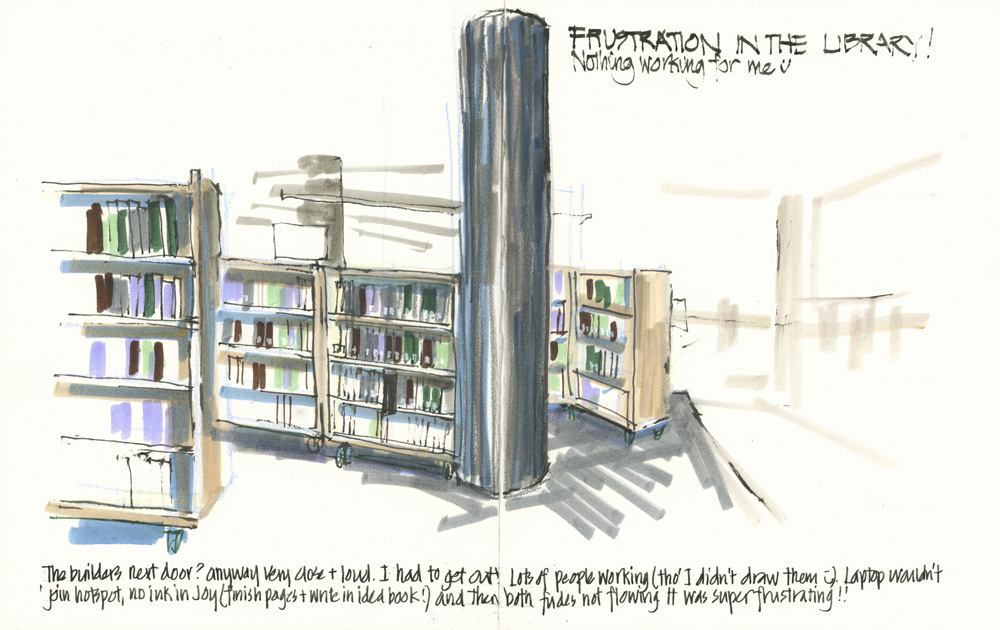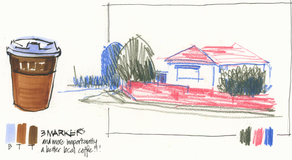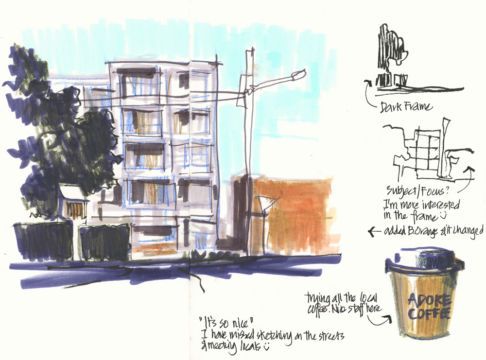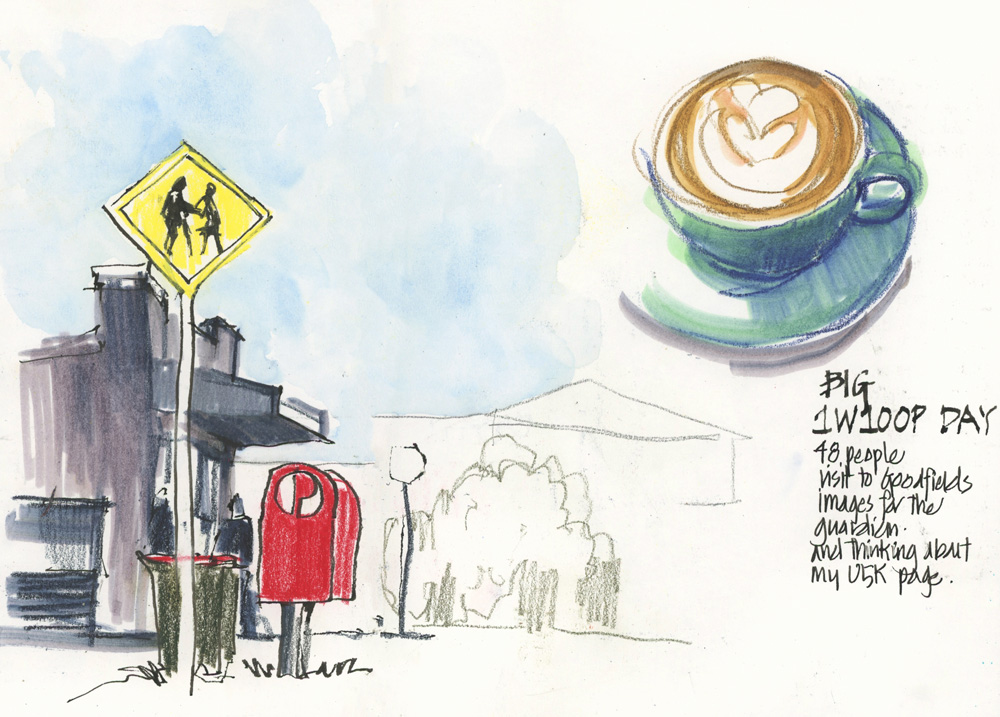 Longtime readers of this blog (and a big hello to you!) will know that for many years I’ve had a morning routine of going out for a coffee and a sketch (and often a walk too!) I did this even when I was working as an architect (see here for an example).