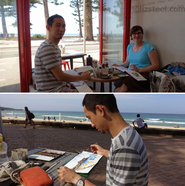 On Thursday and Friday I had a great treat. Two days out sketching with Paul Wang, an urban sketcher from Singapore and great art friend! We spent one day at Manly and one day in Surry Hills. In between all the art-chat we did a little sketching.