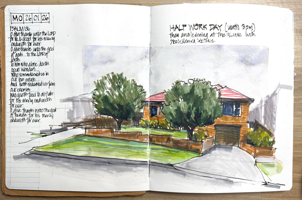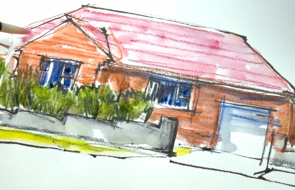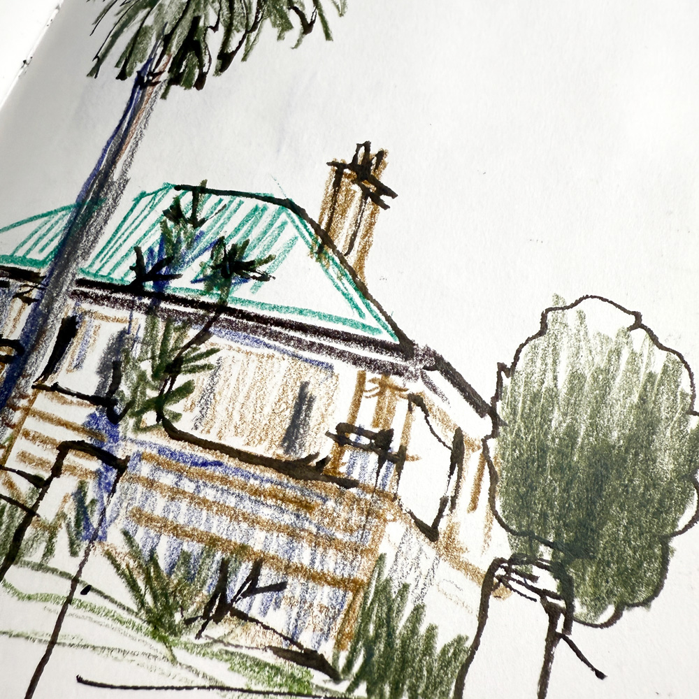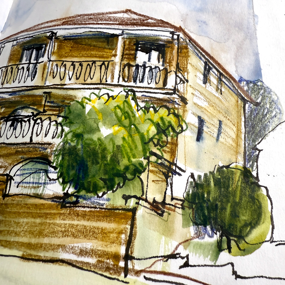Back Home: I continued experimenting with them during my morning local houses sketches…