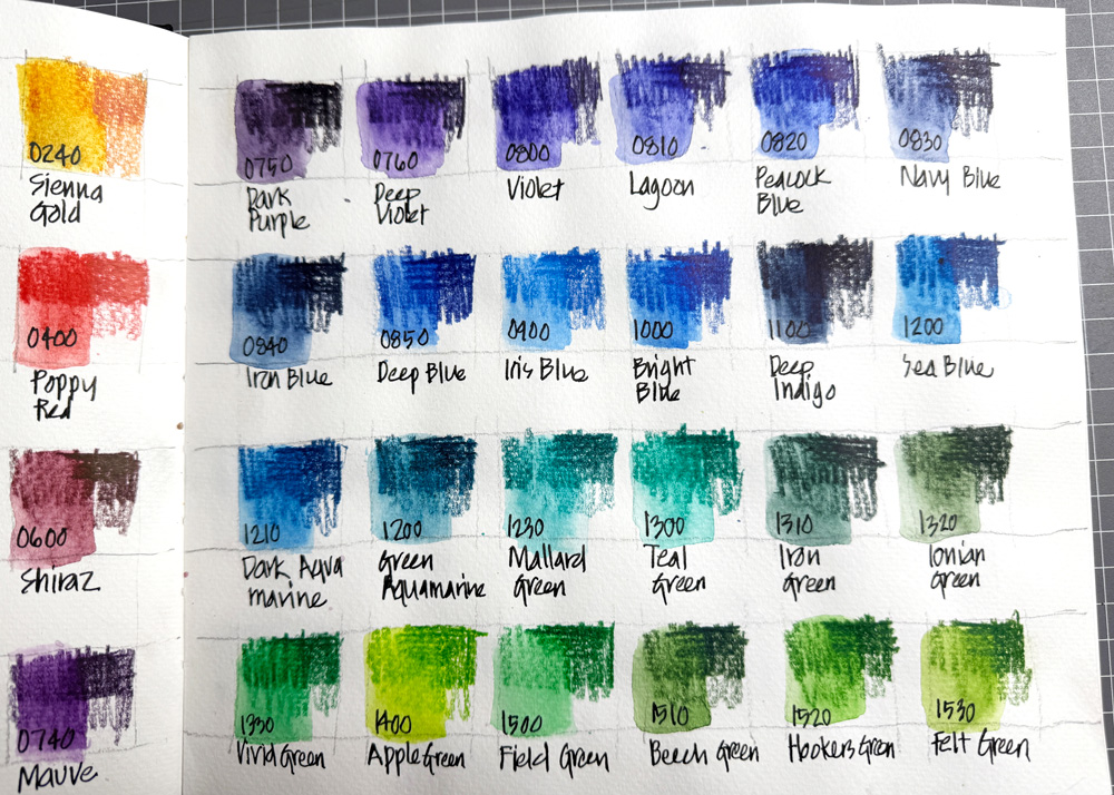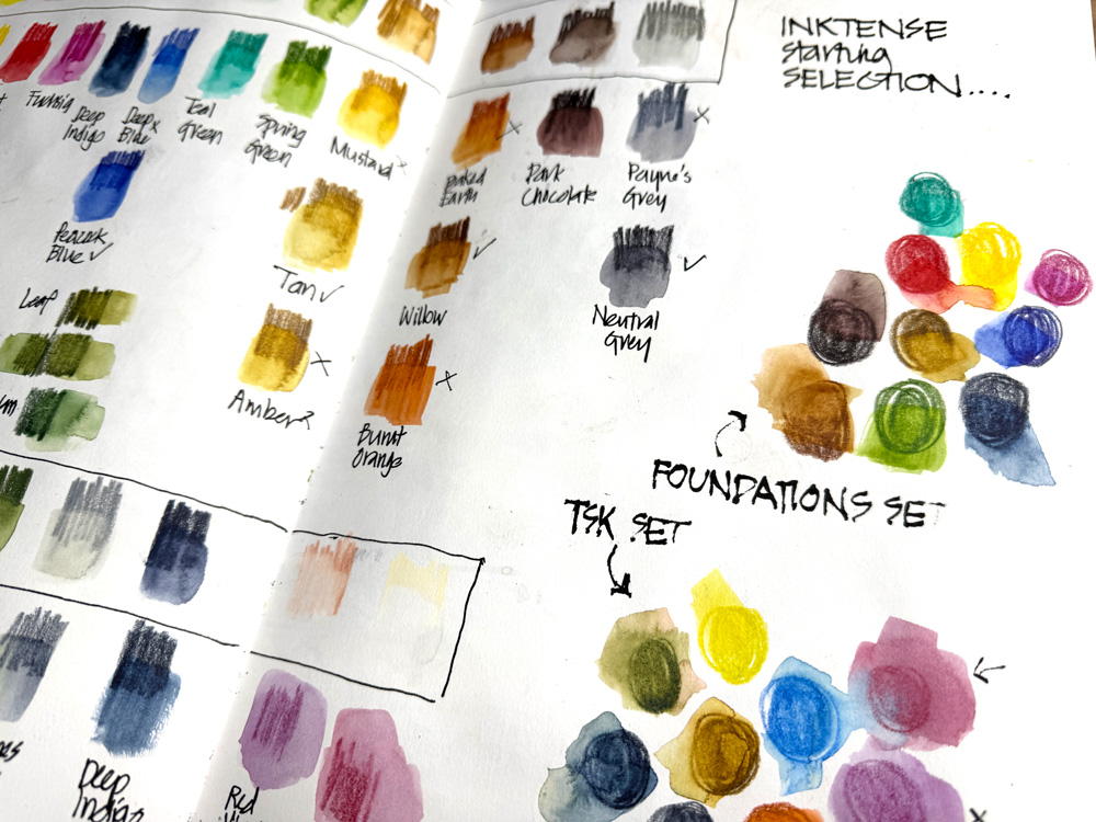I decided to work out which Inktense matched the colours in my Foundations WCP set and my Travel Sketching WCP set.