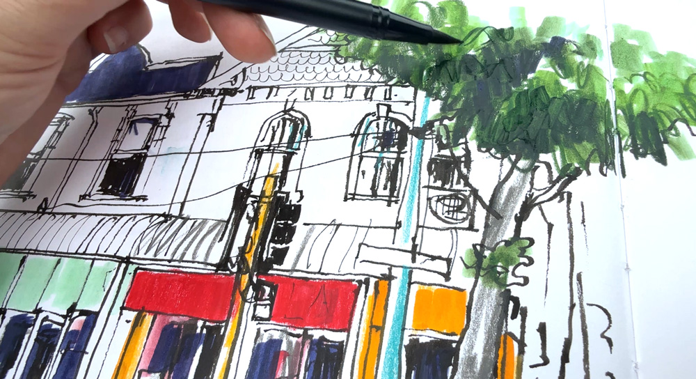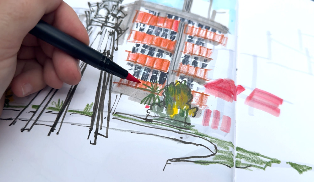 I ended up using the combo of Inktense and Tombows for most of my sketches during the trip…