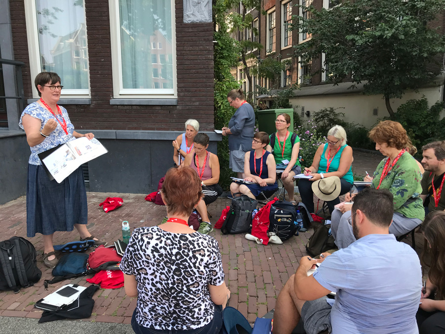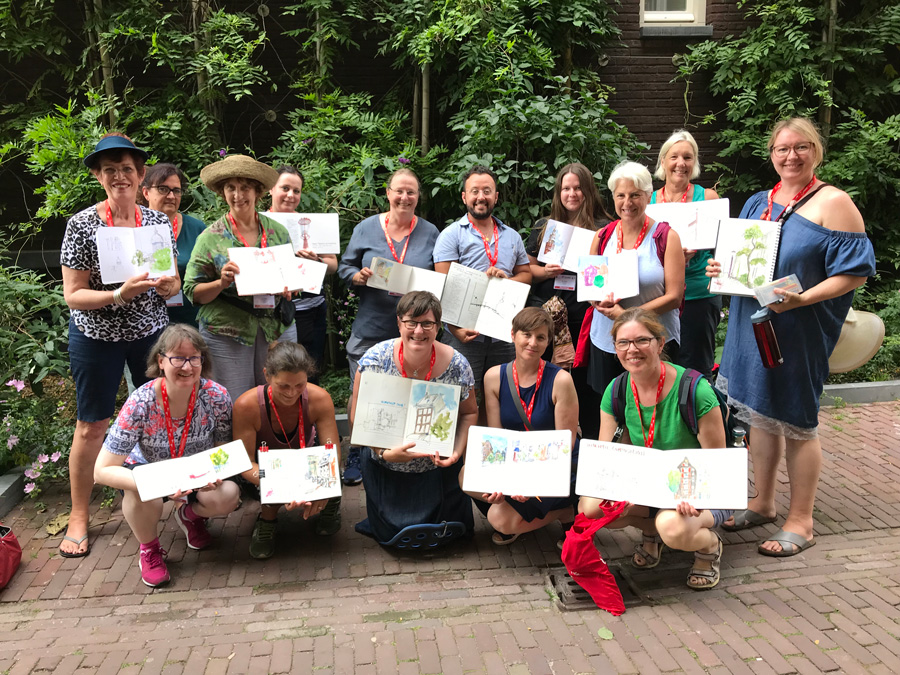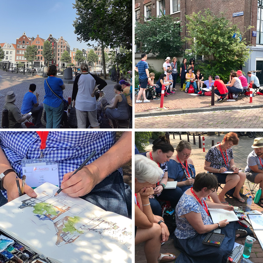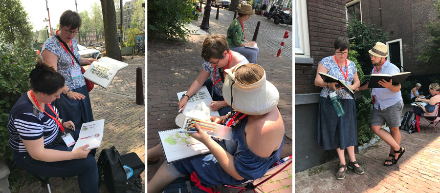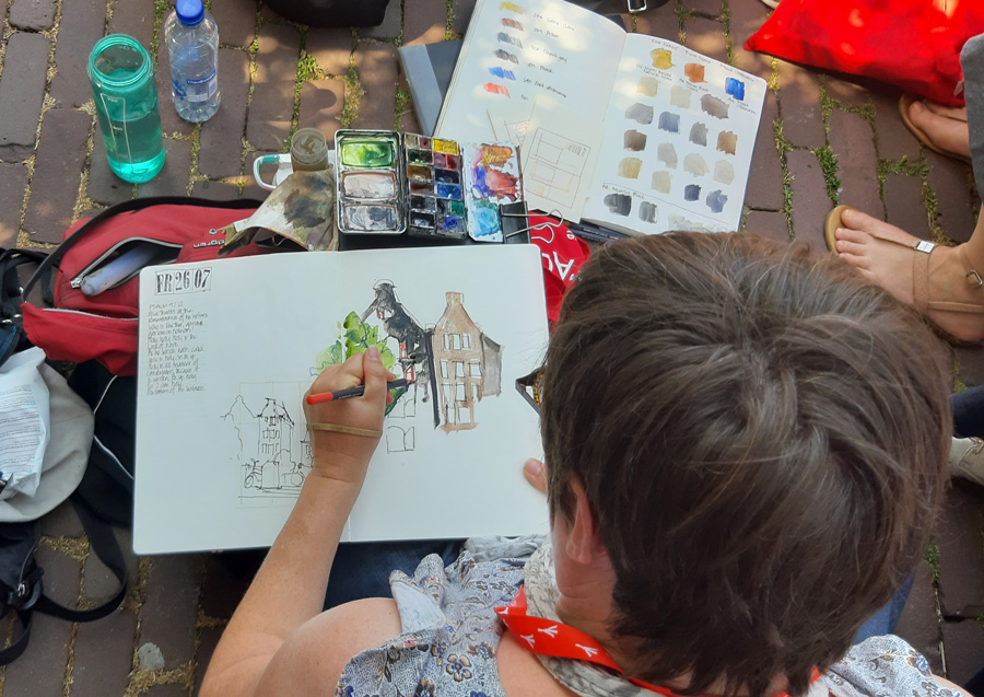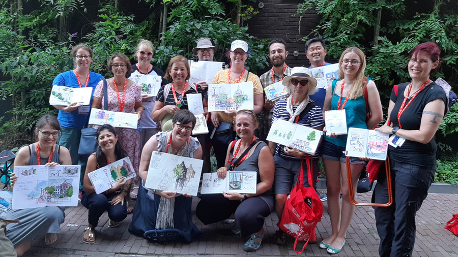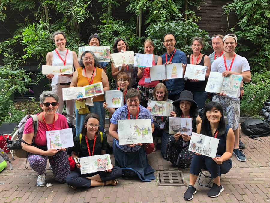This year my workshops – Dynamic Composition and Storytelling – were probably the most satisfying ones I have ever taught at an Urban Sketchers Symposium. And this is despite the extreme record-breaking heatwave (up to 40C) which we endured. It also has nothing to do with the bonus goodie bag from Caran d’Ache!
