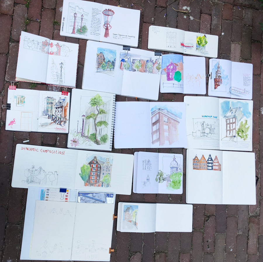 I was so inspired by you all and I hope that you were able to pick up some ideas that you’ve already incorporated into your work making sketching easier, and that you now have some tools for producing more designed sketchbook pages.