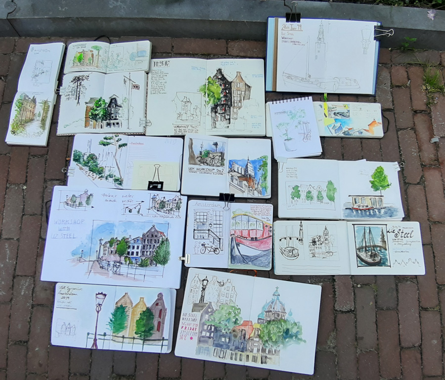 The exercises included composition of the sketch and also of the sketchbook spread as a whole so it was fun to share some ideas about page layout with the groups – this is something I haven’t done before.