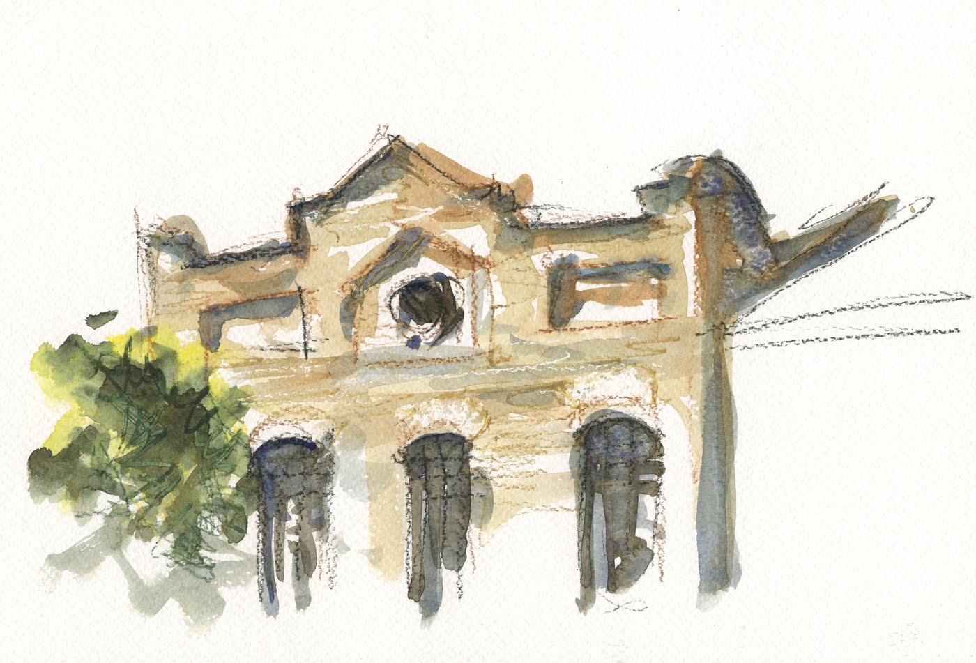 The terminus hotel in a derelict condition… I was having a great time talking to Lisa and wasn’t fully concentrating. Also I am not really in the mood for sketching architecture at the moment (would prefer to be back at the beach) but it was great to get a better feel for this more textured watercolour paper (yes, I am working on loose sheets)