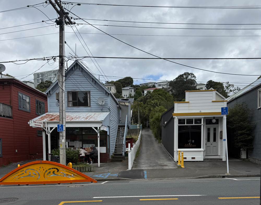 Tuesday: I spent a wonderful day walking the streets (climbing hills) with Peter and we spent a lot of time looking at and analysing the architecture of Wellington.