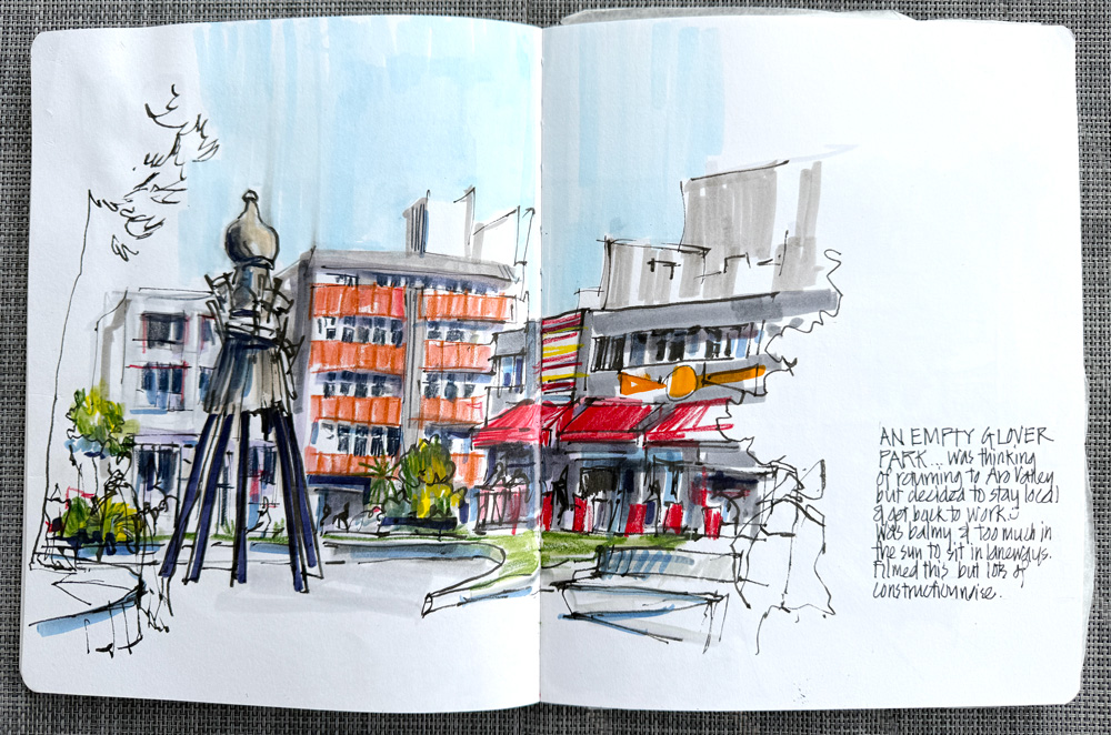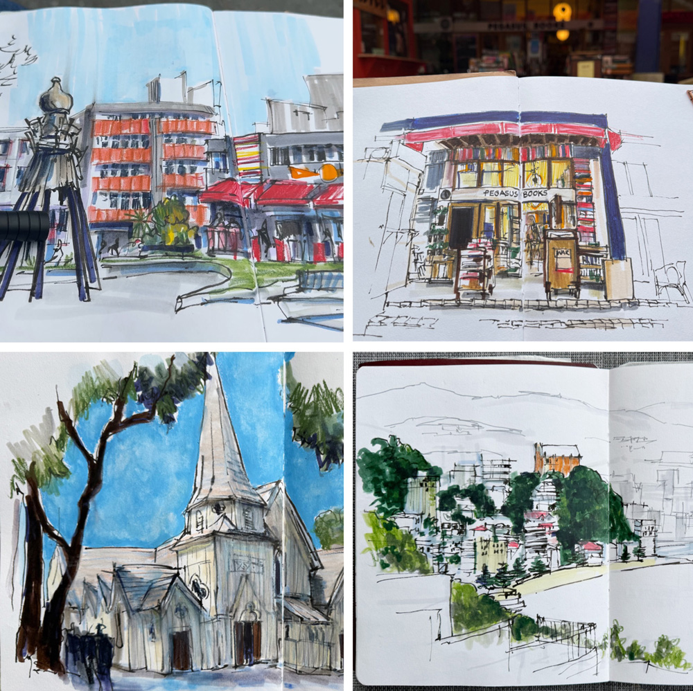 BTW for this second week in Wellington I decided to focus on using Inktense and Tombow exclusively. No watercolour! If you missed it, this was due to the monthly theme inside my community of Unused Supplies.