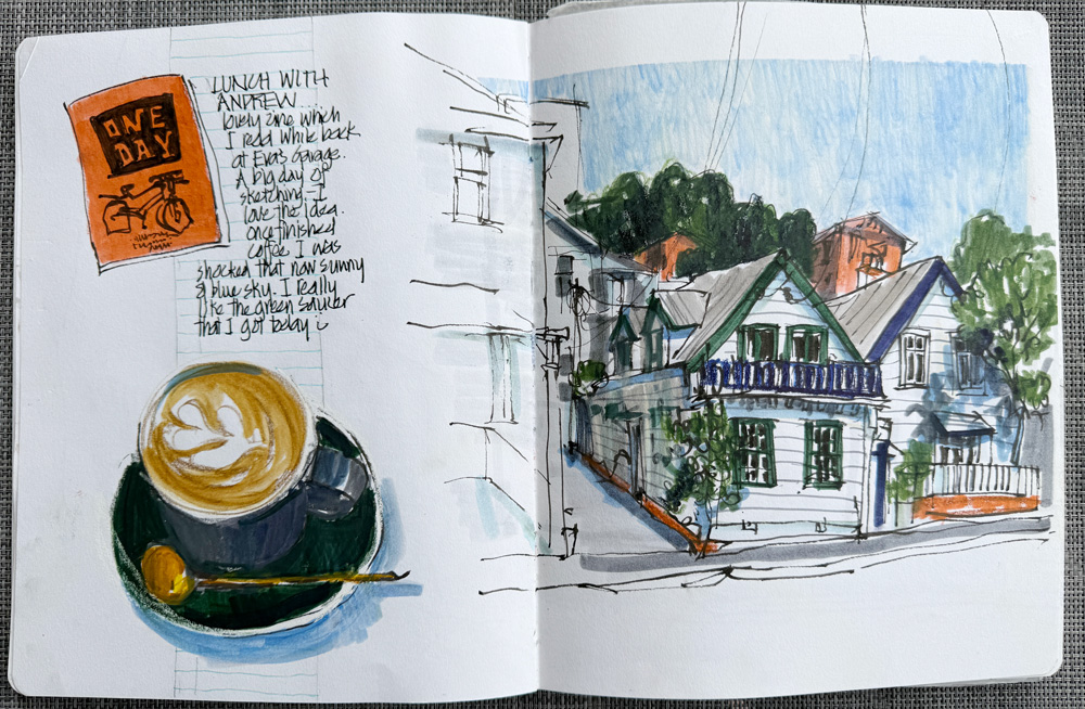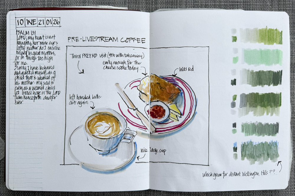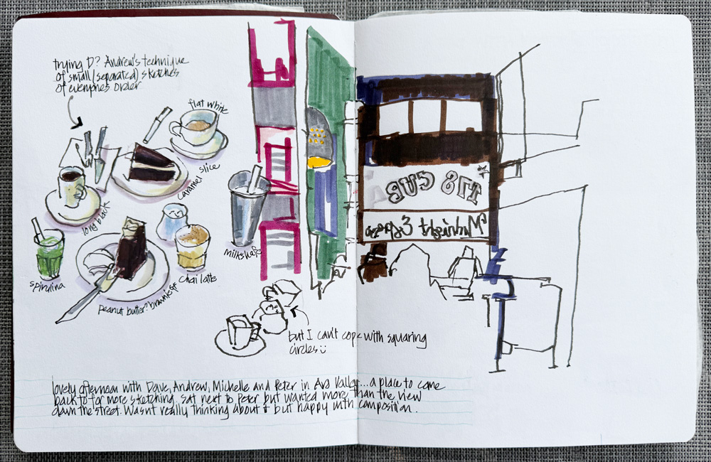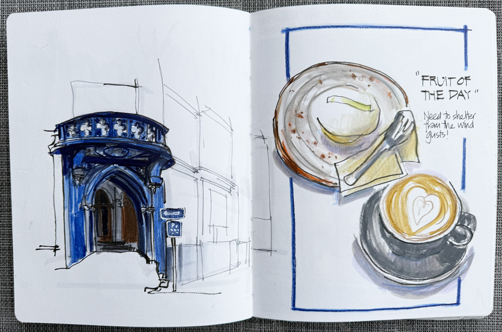 Another cafe visit – after a few hours sketching outside I needed to shelter from the wind.
