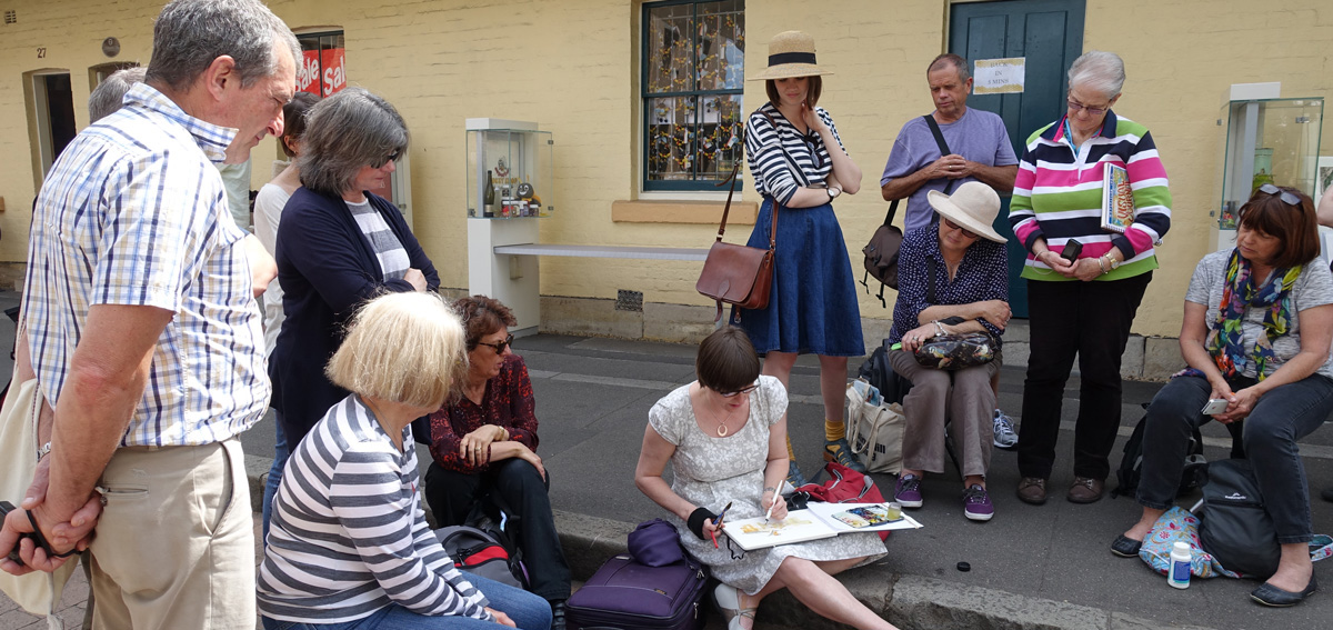 In this workshop we will be looking at how to sketch quickly on location with ink and wash. The Rocks area is a perfect part of Sydney to learn these skills as it’s full of interesting street scenes with lots of different layers of history.