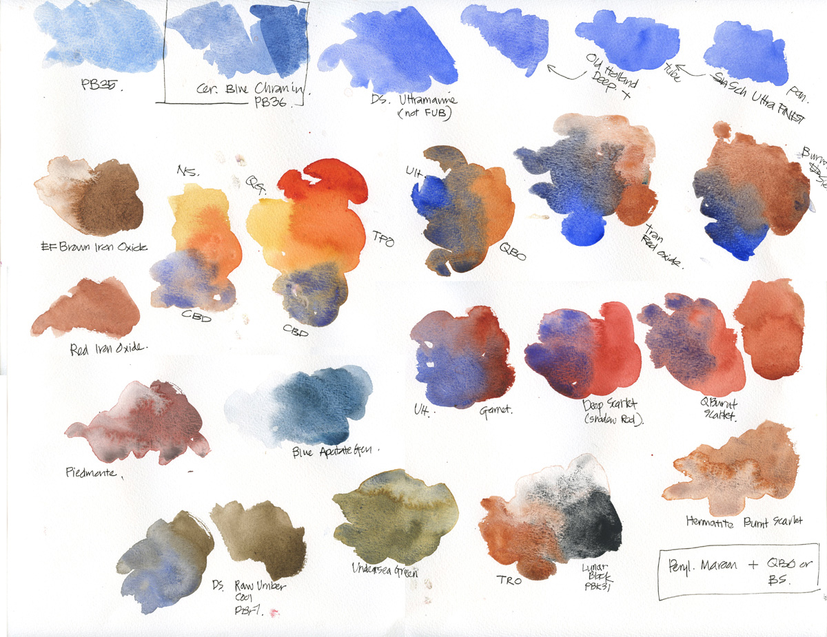 I am not sure how many people are that interested in this…but it is a great record for me to type this up. I blame this addiction to exploring pigments to Roz Stendahl – she did a post years ago (2009?) where she went through all her mixes and decisions. I started to research the pigments behind the names and what they did as a result of that.