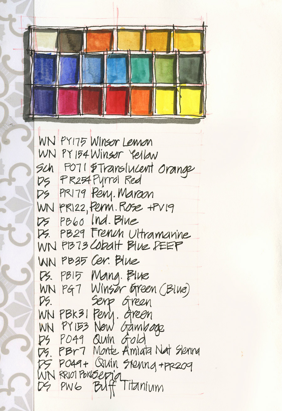 I have started my Trip Book Vol 1 this morning…after so much preparation it was rather nerve racking..so a palette sketch is the way to overcome this anxiety.