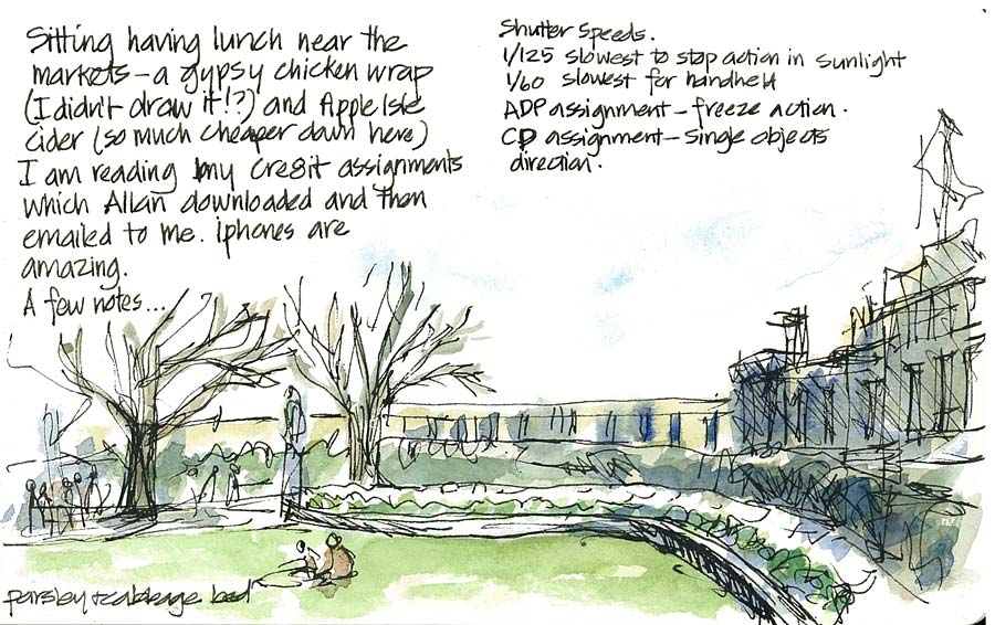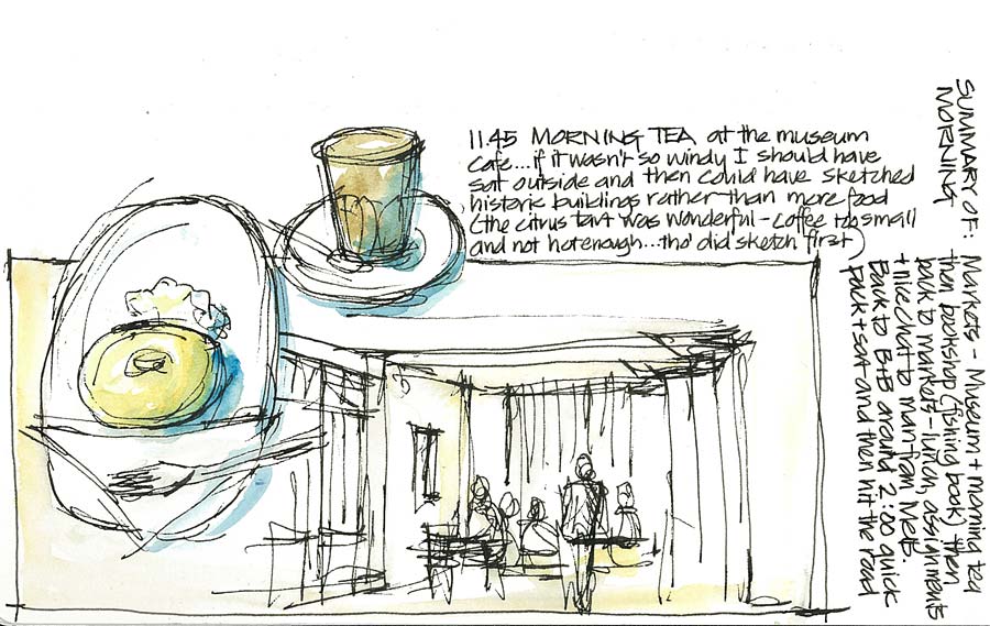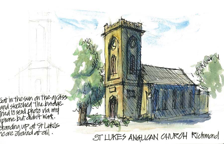 First day still…I think my loose style is more suited to decorative building – I find the crisp simple precise Georgian buildings of Tasmania a real challenge as I just don’t have the patience to do them carefully – so I was trying to do a partial representation here.
