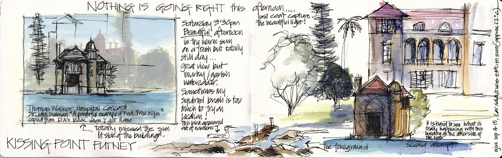 Well, I drew another sketch on Sheer Heaven paper when I got home and have stuck it over the top (on one side only)…so now I have an ‘interesting’ effect but can still lift it up to see and learn from the mistakes of the original.