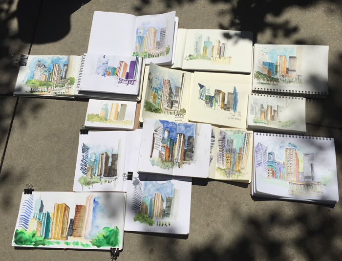 I was realy pleased that I had a 1.5 week’s worth of sketching the city to share with my workshop participants, showing first hand how I had implemented the concepts we explored together.