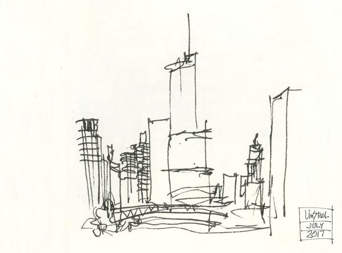 This sketch is of the view from my seat on the boat before the Architectural Boat Tour.