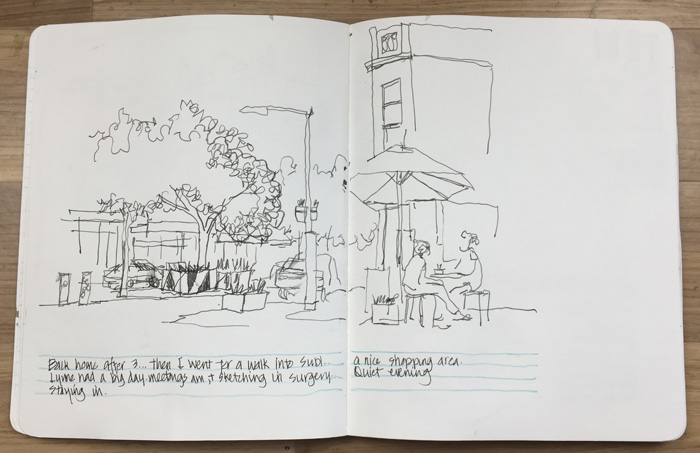 I finished off the day by this quick line drawing of the shopping strip in Subiaco, the suburb where I was staying.