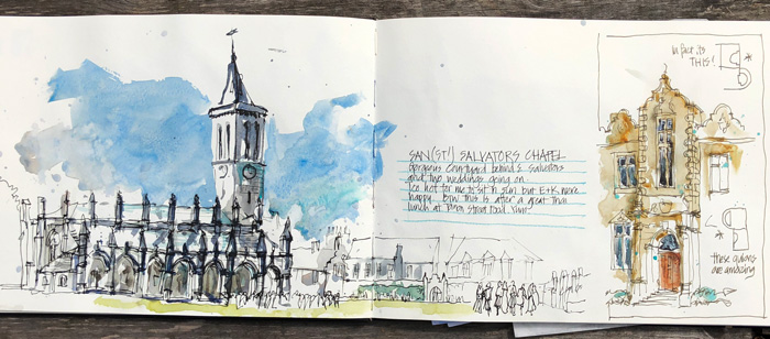 After lunch we headed to the lovely courtyard of St Salvators. I worked quickly as we were sitting in the direct sun and it was getting too hot. Such amazing summery weather!