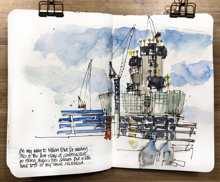 I had a meeting in The Rocks so I walked past Barrangaroo and did a quick sketch of the latest construction there. This building is in the most sketchable phase so I will have to come back and do some more!