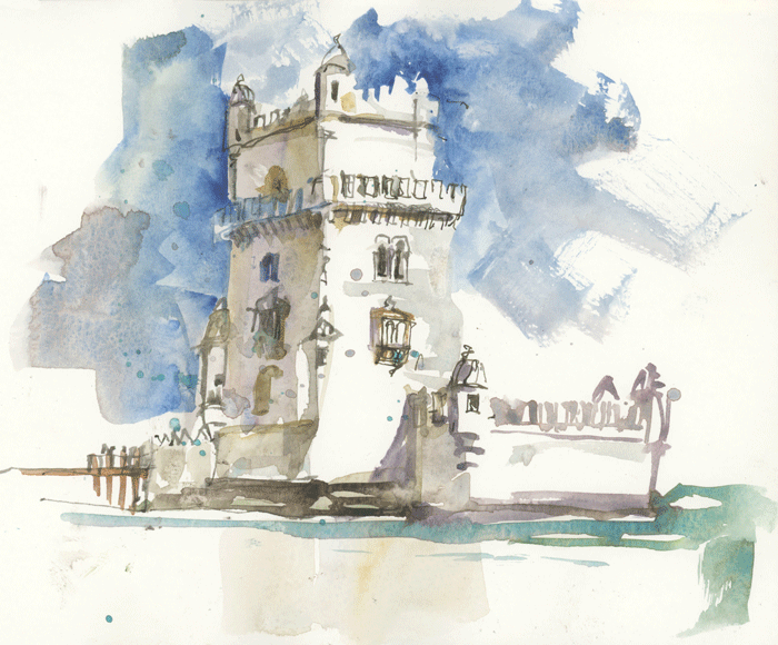 I’m guessing that a lot of you are thinking about Marc Taro Holmes‘ term ‘direct watercolour’ at the moment. And this is indeed what I am talking about – however I use two different terms – ‘starting with paint’ and ‘paint only’. When I start with paint (which represents 90% off my sketching), the first mark on the page is with a brush. I often then switch to line and draw over the first washes, extending the sketch with line before switching back to paint. ‘Paint only’ refers to the occasions where I don’t use any line at all.