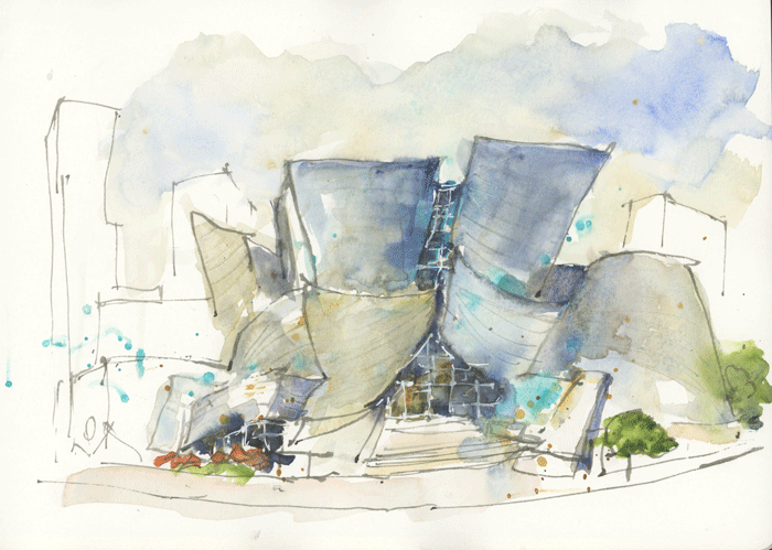 I find it very freeing to sketch buildings in shape – especially those which have big simple volumes.