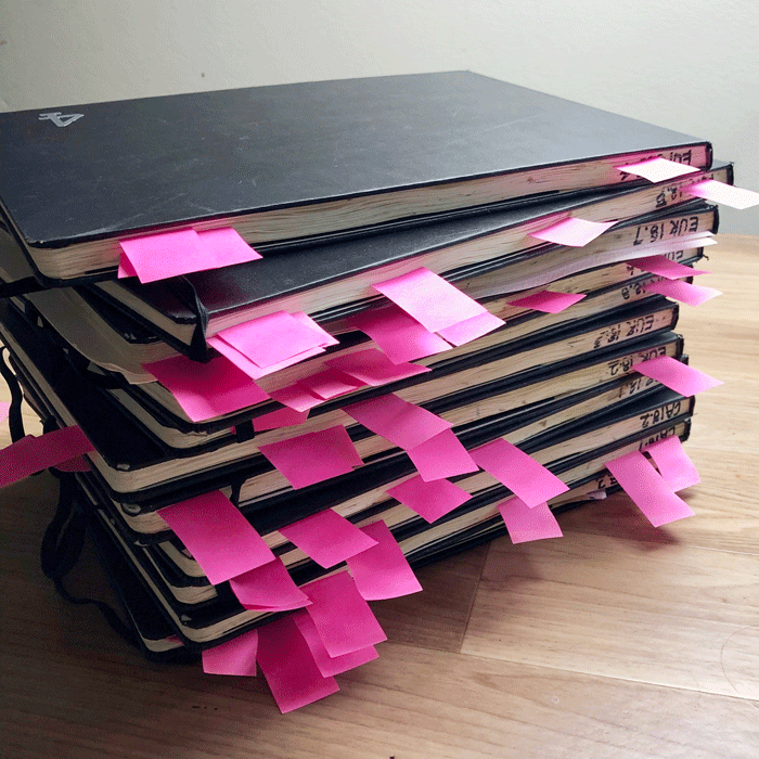 (Sadly due to the limitations of a blog post it is hard to adequately share the impact of the double page spreads in A4 landscape Moleskines – they look small here, but are big in real life.)