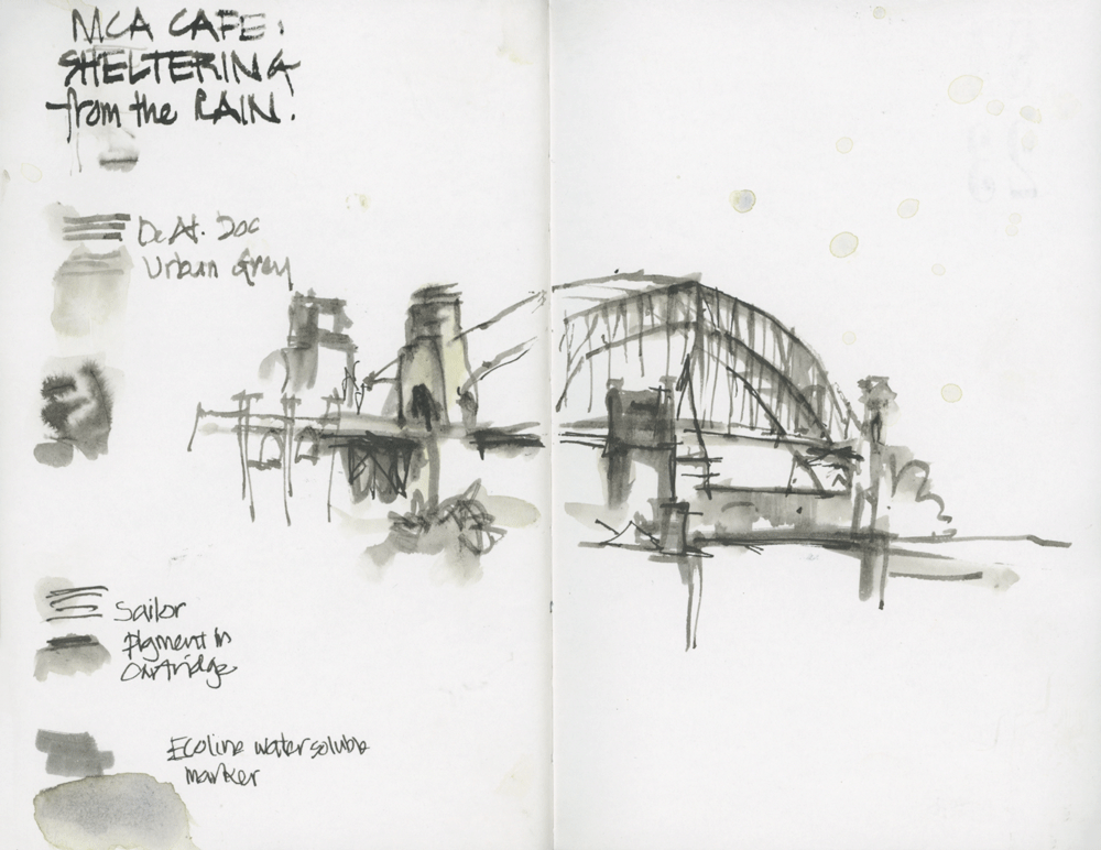 We retreated to the MCA cafe and sketched the harbour bridge again.