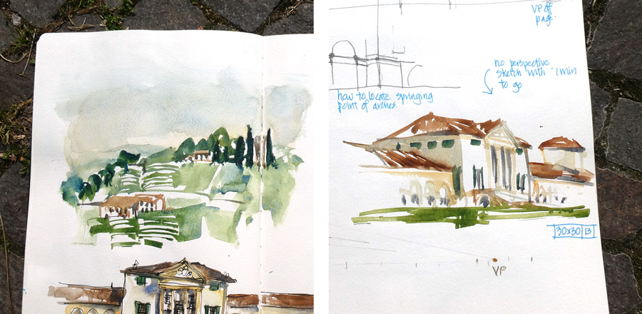 You did a lot of architecture in direct watercolor. Your lines are nice and confident. I find doing the direct watercolor loosens up parts of my paintings but makes me tighter in other parts. ..strange.