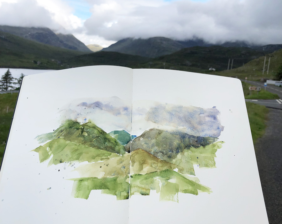 I normally start my sketches with watercolour and I rarely have a plan of how my sketch is going to end up. Instead I just start and see where my sketch leads me. This often involves switching to ink at some point so that I can quickly finish my sketch without having to wait for my initial washes to dry.