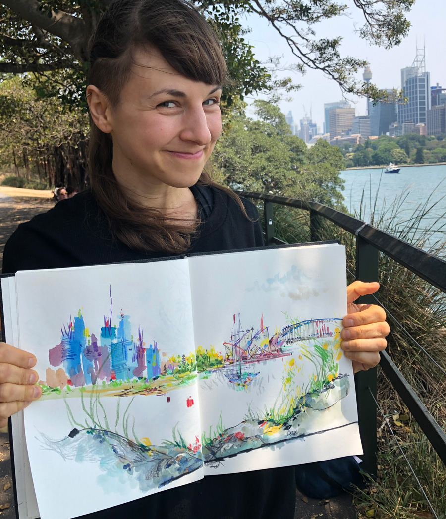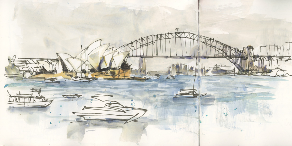I got home later than expected and while I was Instagram scrolling I saw a sketch of the Sydney Opera House by Benedetta Dossi – I’ve been a huge fan of her work since the early days of the Urban Sketchers blog. Wow! She was in Sydney.