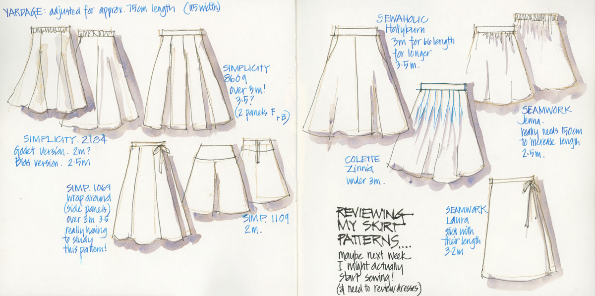 Note. One of the fun things about looking through my old sketchbooks and the summer period is all the random references to cricket. I’ve really stopped following it in recent years but decided that as it’s ‘the sound of summer’ and makes me think of holidays (and particularly sewing during summer break) it would be a nice thing to have on in the background.