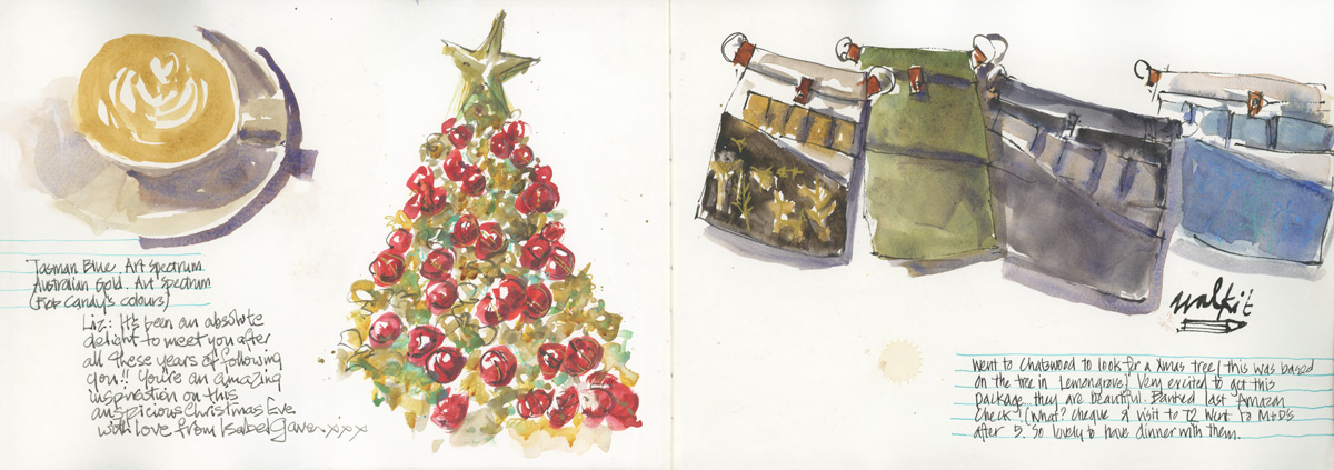 Manly was getting too busy for our liking with crowds getting off each ferry that arrived. So we decided to leave and return to Circular Quay. It was also packed with lots of people from non-Christmas cultures – it didn’t feel like Christmas at all. I did a quick SOH sketch and then had fun watching Chris work. BTW it was nice to sketch less on this day and spend time watching Chris’s wonderful wet-in-wet techniques.