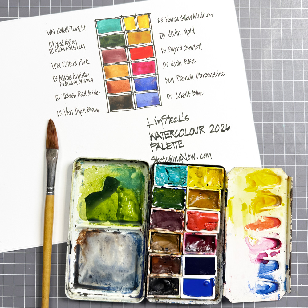 Part of my prep this week was to get out my dedicated Watercolour palette to top it up. And in the process, I made a few minor tweaks from the original selection used in the course.